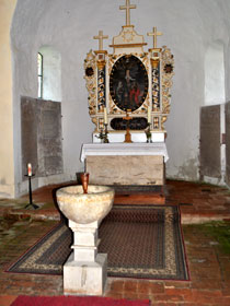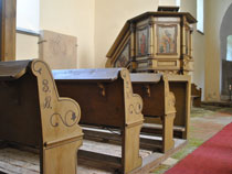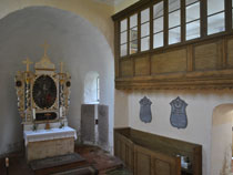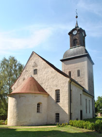 Ein netter alter Herr wartet schon mit dem Schlüssel am Gartentor. Er hat gesehen, dass da jemand neugierig um die Kirche schleicht und fest damit gerechnet, dass der nach dem Schlüssel fragen wird. Der Herr kommt freundlicherweise gleich mit und macht eine Kirchenführung.