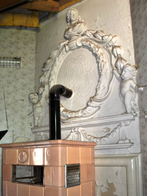 Das Ofenrohr im Ehrenkranz ist natürlich der Hammer unter allen Details im Haus, dagegen ist der Wandschrank im historischen Türrahmen gar nichts. |