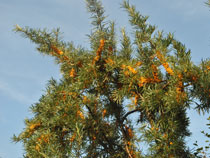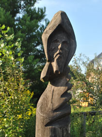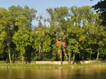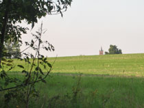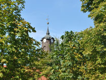 Auf einem von Beeren tragenden Bäumen und Sträuchern kommt man der Stadt immer näher und wird der Turm der Pfarrkirche scheinbar immer höher. Da die Kirche auf einem Hügel steht, überragt ihr Turm sämtliche Häuser. | ![]() |