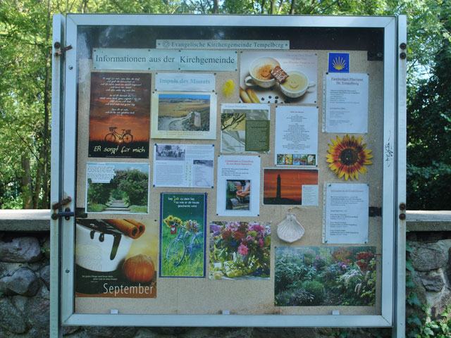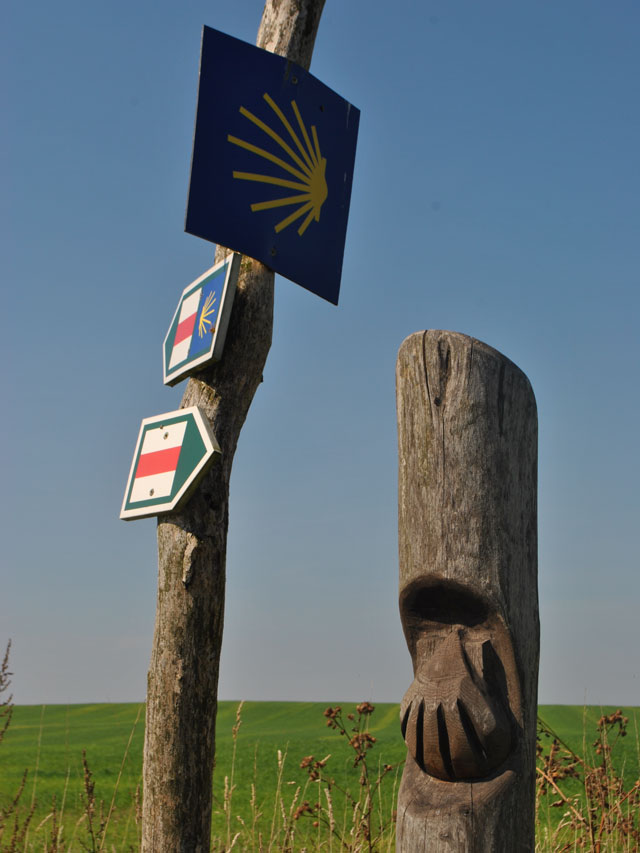 In beiden Fällen muss man in die L36 einbiegen und nach 100 Metern rechts den als Jakobsweg ausgeschilderten Wanderweg nach Tempelberg nehmen. |
