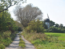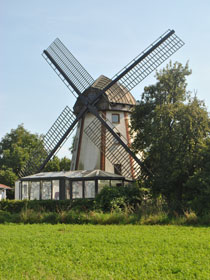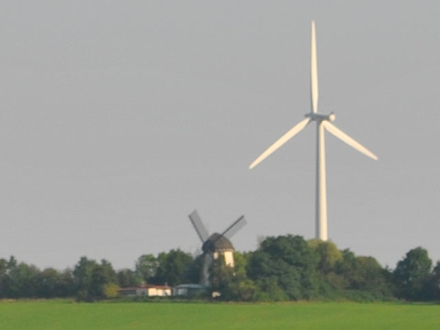 Beim Blick zurück fällt noch mal die Holländermühle ins Auge, aus dieser Perspektive gepaart mit einer modernen Variante.