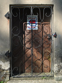Die Tür mit dem Schild „Offene Kirche“ ist aber leider vergittert und verschlossen.