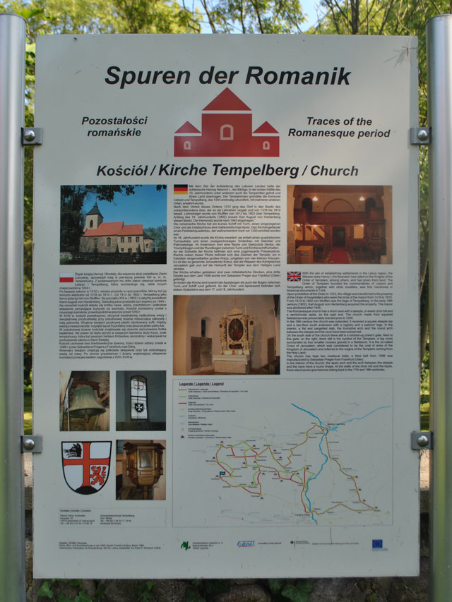 Eine Info-Tafel zu den „Spuren der Romanik“ erzählt, dass „Heinrich der Bärtige“ (Herzog Heinrich I.) Anfang des 13. Jahrhunderts die Tempelritter ins Land geholt hat, um die Besiedlung voranzutreiben. Diese gründeten die Komturei Lietzen und den Ort Tempelberg.