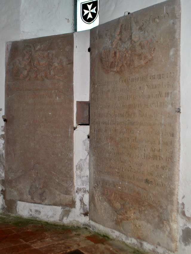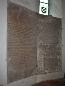 In der Apsis findet man zweimal zwei und im Chor drei weitere Epitaphe aus dem 17. und 18. Jahrhundert. Letztere schauen wir uns mal genauer an. |