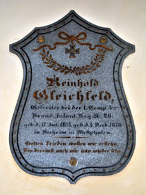 Reinhold Gleichfeld, Gefreiter bei der 1. Comp. 3ten Brand. Infant. Reg. Nr. 20, geb. d. 17. Juli 1815, gest. d. 4. Decb. 1870 in Nieheim in Westphalen. |