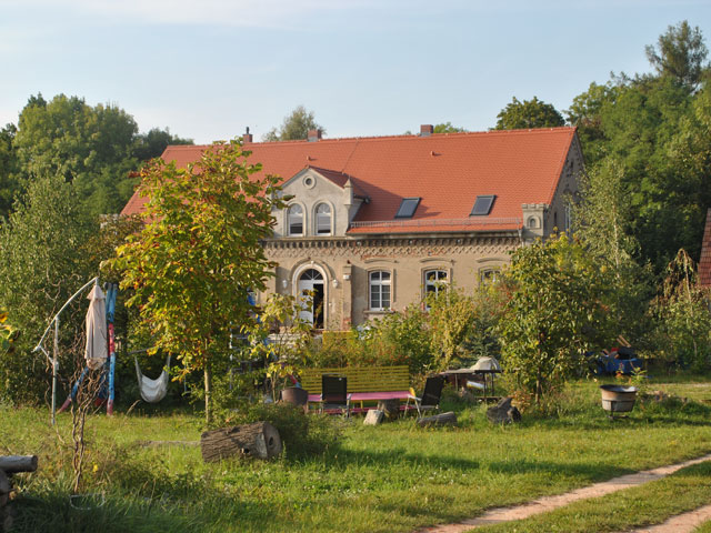 Vom Herrenhaus geht es entweder die Hauptstraße runter bis zur B5 und dort nach rechts, oder (wie als Jakobsweg ausgewiesen) durch die Straße an der Brennerei, zwischen den Seen hindurch und dann die Müncheberger Straße hinunter bis zur B5 und dort nach links.