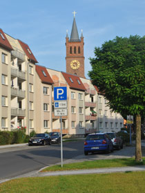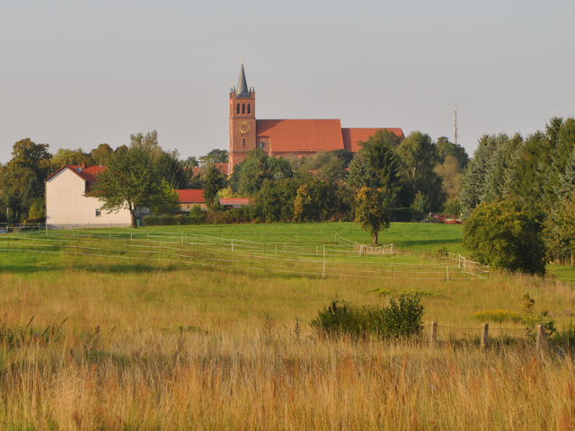 Wie in Falkenhagen, so gibt es auch hier ein „Ah-Erlebnis“. Kaum ist man auf der finalen Wegstrecke nach Müncheberg, taucht über dem Horizont eine Kirchturmspitze auf: die Müncheberger Stadtpfarrkirche. Das ist für heute das Etappenziel, aber bis dort ist es noch ein Stück zu laufen.