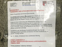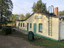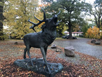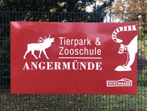 An der Puschkinallee befindet sich auch der Angermünder Tierpark. Ein röhrender Hirsch an der Ecke lädt zum Besuch ein, aber um diese Zeit ist er noch geschlossen und mir bleibt nur der Weg entlang des langen Zaunes. Wie sich dabei zeigt, schlafen auch noch fast alle Tiere. |