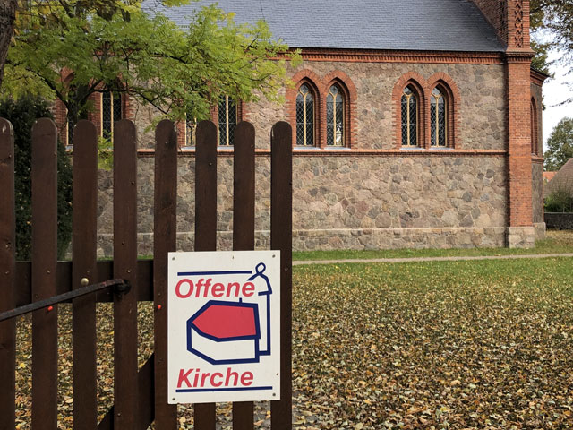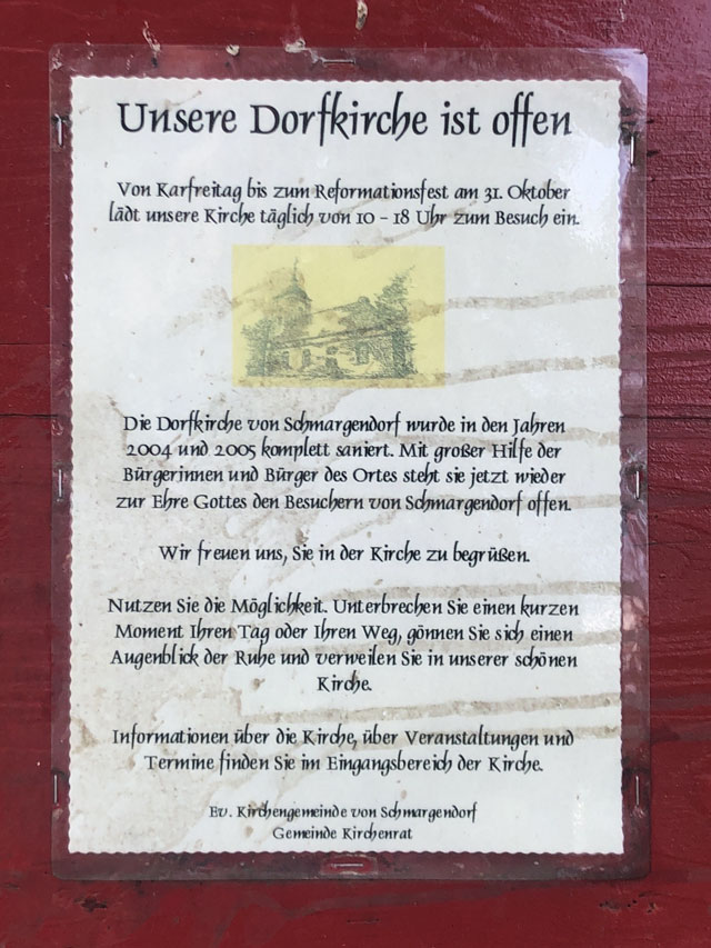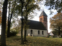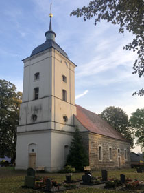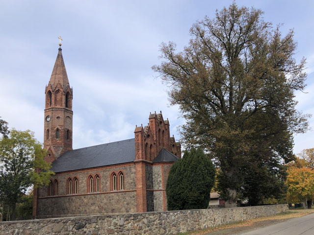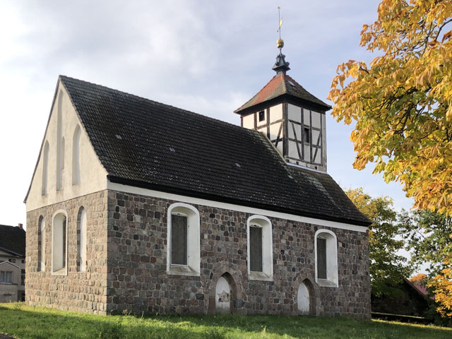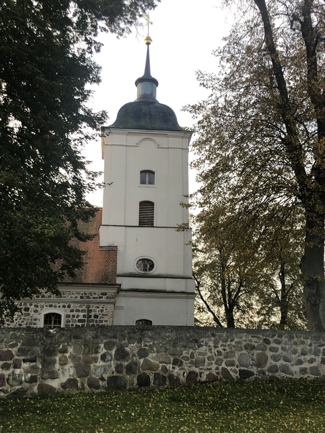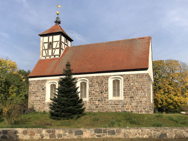 Die Dorfkirche grüßt schon über die Bäume und erweist sich beim Nähertreten als ein echtes Schmuckstück.