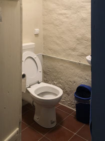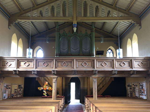 Die Überraschung, dass die Kirche so früh am Tage geöffnet ist, wird noch dadurch gesteigert, dass man hier im Vorraum eine Toilette eingebaut hat, die dem bedürftigen Wanderer sehr gelegen kommt. Wie schön wäre es, wenn wir in unserer Dorfkirche auch Sanitäranlagen hätten. Dann könnte man sie deutlich vielseitiger nutzen als momentan.
