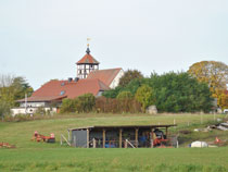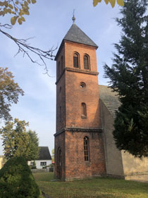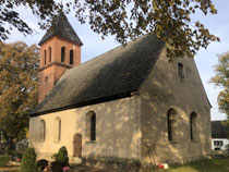 Die Feldsteinkirche stammt aus dem 13. Jahrhundert, der ca. 30 Meter hohe quadratische Turm wurde 1745 angebaut.