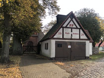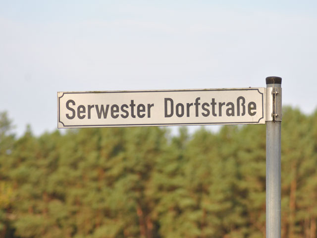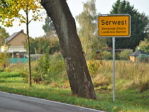 Für den Weg nach Serwest nehme ich die kleine Gasse, die hinter dem Anger rechtwinklig von der Dorfstraße fortführt. | ![]() |