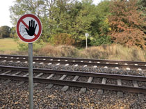 Es empfiehlt sich, auf der Serwester Dorfstraße zu bleiben, am Ortsende links abzubiegen und den regulären Bahnübergang zu benutzen. Die Straße, in welche abgebogen wird, heißt übrigens auch Serwester Dorfstraße. Hier ist man auch wieder auf dem Jakobsweg, der von Klein Ziethen einen Bogen nach Norden über Groß Ziethen gemacht hat. |