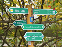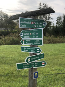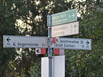 Am südlichen Ende des Angers findet sich wieder eine ganze Reihe an Wegweisern.