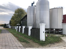 Die Wegweiser nach Chorin zeigen zwar alle nach rechts (was auch ein schöner Weg ist), ich folge aber der Jakobsmuschel nach links und gelange auf einem Fuß-/Radweg entlang der K6013 zum Ökodorf Brodowin. Damit ist ein größeres Gehöft gemeint, in dem ökologisch erzeugte Produkte der Region verarbeitet werden. So zum Beispiel Milch, die in einer Gläsernen Molkerei zu Käse, Quark usw. verwandelt wird. Durch eine große Glasfront kann man dabei zuschauen und die fertigen Produkte gleich nebenan im Hofladen kaufen. |
