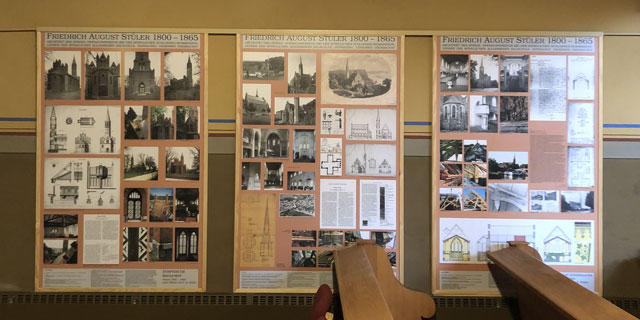 Auf liebevoll gestalteten Tafeln an den Wänden erfährt man viel über Friedrich August Stüler und seine Bauten, die nicht nur in der Region, sonden bis hin nach Königsberg und Bayern zu finden sind und von Denkmälern über Kirchen und Museen bis hin zu Brücken reichen. |