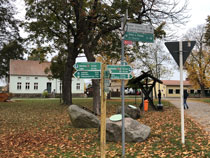 Wenn man streng dem Jakobsweg folgen würde, käme man gar nicht durch den Ort, sondern müsste gleich hinter dem Ortseingang nach rechts abbiegen. Der ausgeschilderte Weg verläuft nämlich in einem Bogen über Groß Ziethen. |