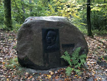 Der Jakobsweg führt zwar über Kloster Chorin und Sandkrug nach Eberswalde, aber ich muss unbedingt abkürzen, um meinen Zug in Eberswalde zu erwischen. Deshalb biege ich am Forstmeister-Dengler-Denkmal links ab.