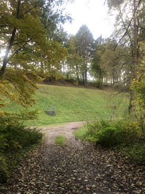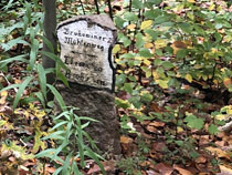 Hier verrät ein Markierungsstein (unten rechts), dass man sich fortan auf dem Holzweg befindet. Hoffentlich ist das wörtlich und nicht sprichwörtlich zu nehmen.