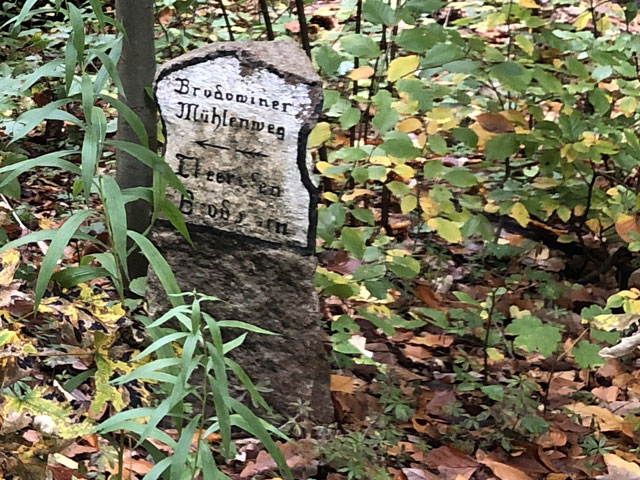Am Weg gibt es ein paar Rastplätze und an Kreuzungen alte Markierungssteine, durch die man erfährt, dass dies mal der Brodowiner Mühlenweg war.