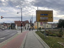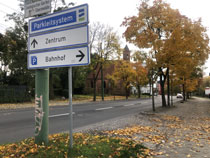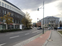 Vorbei an einer Grünanlage am Kanal biege ich rechts in die Eisenbahnstraße (B167), die im Bogen um die Innenstadt und dann geradeaus zum Bahnhof führt. | ![]() |