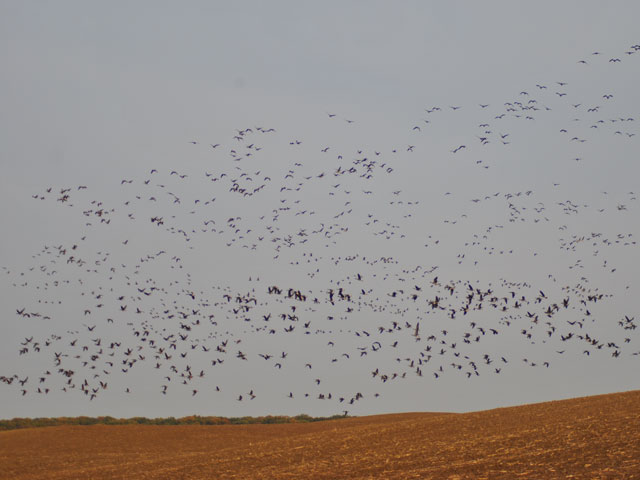 Immer wieder starten hunderte Stare zu einem Probeflug, drehen im Schwarm eine Runde und lassen sich anderswo nieder.