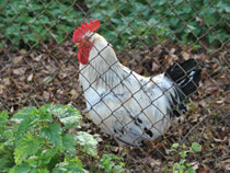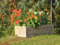 Am Ortseingang wird man nicht nur vom Hahn, sondern auch von diverser Deko, z. B. einem Blumenfarrad, freundlich begrüßt.