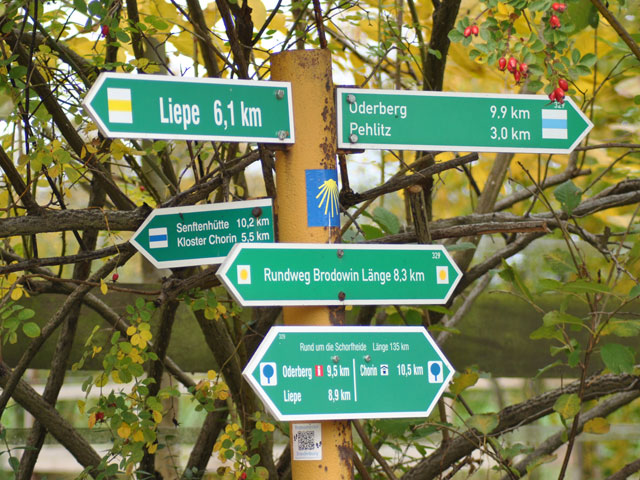 Natürlich ist es ein Sakrileg, das Kloster Chorin, das wichtigste Bauwerk am Wege, das geeignet ist, die Wanderung zu einer Pilgertour zu machen, zu umgehen. Es fällt mir auch tatsächlich schwer, aber ich tu dies mit einem ruhigen Gewissen, den erstens war ich erst vor kurzem auf dem Rundweg Chorin-Weißensee-Brodowin-Chorin unterwegs und zweitens werde ich in ein paar Tagen mit einer größeren Gruppe diesen Weg bis nach Chorin laufen. |