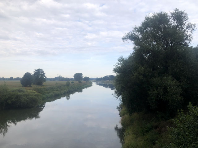 Nachts habe ich hervorragend geschlafen und morgens habe ich mir Zeit gelassen, geduscht, Kaffee getrunken und mich kurz mit den beiden Radlern unterhalten, die kaum aufgestanden, schon auf bepackten Rädern saßen. Die beiden Männer, geschätzt 30 Jahre, sind Amerikaner, der eine Orgelbauer und der andere Orgelspieler. Der Orgelbauer lebt und arbeitet in Deutschland, weshalb er sehr gut Deutsch spricht. Er hat für seinen Freund eine Radtour zu einigen den besten Orgeln Deutschlands zusammengestellt und organisiert, dass er darauf spielen darf. Tolle Idee! Gestern sind sie in Borkheide bei Potsdam mit dem Fahrrad gestartet und in Wittenberg zum Orgelspiel in die Schlosskirche eingekehrt, weshalb sie abends so spät dran waren. Heute wollten sie nach Halle und weiter nach Merseburg, wenn ich mir das richtig gemerkt habe.