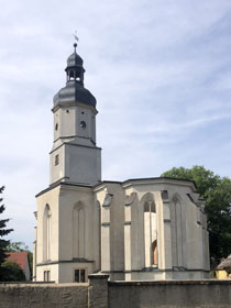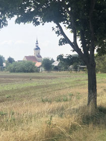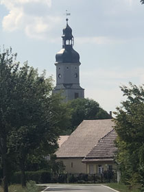 Nun haben sich die netten Nachbarn ins Zeug gelegt und herumtelefoniert, wer denn weiß, wer den Schlüssel hat. Ich habe derweil die Urlaubsvertretung des Pfarrers angerufen, eine Pfarrerin einige Orte weiter. Die konnte mir auch nicht auf Anhieb weiterhelfen, versprach aber, sich zu kümmern. Nach einer Weile rief die von ihr informierte Vikarin an und sagte, dass sie dem Pfarrer eine SMS geschickt hat. Zugleich bot sie mir einen Platz in der Pilgerherberge Weltewitz an, ca. 8 km von hier. Sie könnte mich auch abholen und dorthin fahren. Aber ich hatte mich schon auf die Nacht auf dem Treppenabsatz eingerichtet. Da konnte sie mir wenigstens noch den Tipp geben, wo ich im benachbarten Pfarrhaus Toiletten finde. Ein paar Minuten später rief sie nochmal an und sagte, dass Sie die Pfarrsekretärin erreichen konnte, die den Schlüssel hat und mir aufschließen wird. Das kann nur einen Moment dauern, weil die Dame drei Dörfer weiter wohnt. Ich war inzwischen auf dem Weg zum ziemlich weit entfernten Supermarkt, denn irgendwas brauche ich ja zum Abendbrot und für morgen früh. Eigentlich hatte ich vor, nach dem Einkauf gleich beim Griechen, der einzigen offenen Gaststätte, was zu essen. Aber nun wollte ich erstmal sehen, welchen Lauf der Abend nimmt.