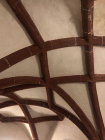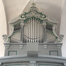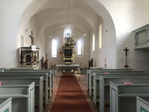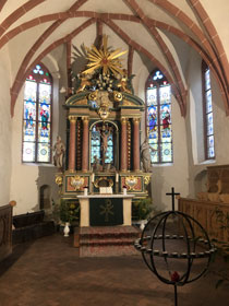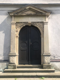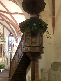 Die Treppe hoch geht es zu einem Jugendraum, von dem aus man ins Pilgerzimmer kommt. Hier war die Tür nur leider wirklich verschlossen und es war nicht herauszubekommen, wer einen Schlüssel hat. Die Kirchenälteste, die man hätte fragen können, war tatsächlich nicht erreichbar.