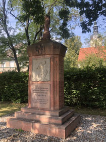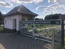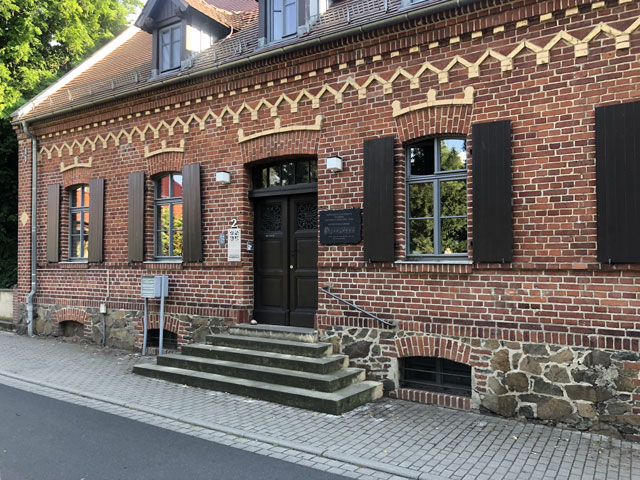 Im Pilgerherbergsverzeichnis ist hier in Krostitz ein Bett im Gemeindehaus als Pilgerherberge ausgewiesen. Das habe ich beim Pfarrer reservieren lassen. Ich sollte mich nach der Ankunft bei der Kirchenältesten melden, die mir aufschließt. Ein paar Tage später kam eine Mail, dass die Dame an dem Tag nicht da ist, ich aber offene Türen vorfinden werde. Bei meiner Ankunft gegen fünf Uhr bin ich aber schon an der Gartentür gescheitert. Eine nette Nachbarin hat mir jedoch verraten, mit welchem Trick man rein kommt.