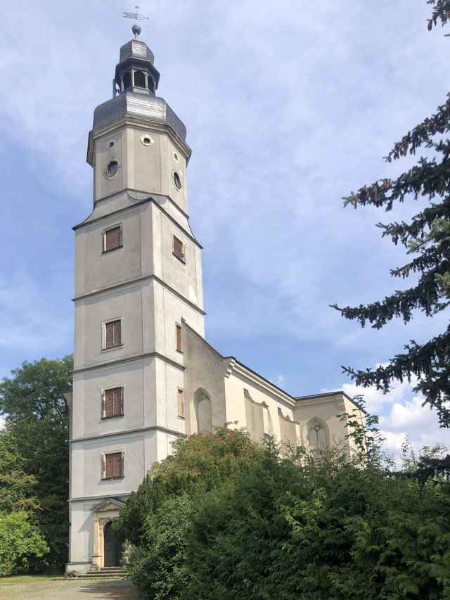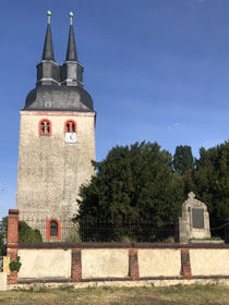 An Sehenswürdigkeiten gab es noch in Wölkau die große Kirche ohne Dach und Fenster. Im deckellosen Kirchenschiff ist eine Ausstellung zur Kirche aufgebaut, wie man durch Schlitze in der Tür erkennen kann. Leider kommt man nicht rein.