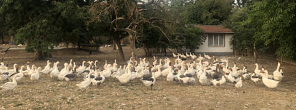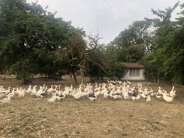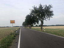 Ich bin halb sechs aufgestanden und war viertel sieben schon unterwegs. Die ersten Kilometer waren nicht schön, weil es immer am Fahrbahnrand lang ging. Kurz hinter Krostitz wäre ich fast über ein totes Rehkitz gestolpert, das offensichtlich angefahren und liegen gelassen wurde. Ich habe 110 angerufen und die Angaben auf der nächsten Bake durchgegeben: „K7424, km 1,9“, aber der Freund und Helfer wollte eher eine prosaische Beschreibung des Fundortes. Mit „hinter der Kurve beim Funkmast“ hat er sich dann zufrieden gegeben. Zum Glück musste ich nicht die Ortsnamen an der Strecke buchstabieren. Die sind doch sehr gewöhnungsbedürftig: Mutschlena wäre der nächste Ort gewesen. Da gackerte fröhlich eine ganze Meute Gänse hinterm Zaun am Straßenrand. Die schienen nicht zu wissen, dass bald Weihnachten ist. Ihre Vorfahren hatten übrigens eine noch geringere Lebenserwartung, die waren schon zum Martinstag fällig.