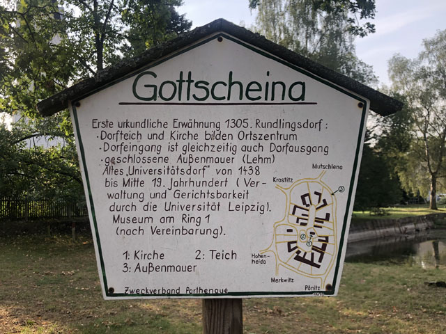 Der nächste Ort, Gottschena, ist überraschenderweise Ortsteil von Leipzig, die nachfolgenden Orte gehören hingegen zu Taucha.