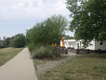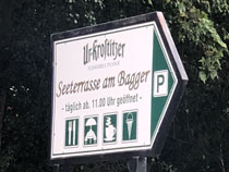 Nach Merkwirtz kommt Pleißig. Ab da geht es mehr oder weniger direkt an der Parthe entlang. Infotafeln nennen die nachfolgenden Ortschaften „Parthedörfer“. Der Weg unterquert dann die Autobahn und bald darauf ist man wirklich in Leipzig. Da liegt ein Netto am Weg und kurz danach findet sich an „Baggersee“, einer ehemaligen Kiesgrube, nicht nur ein Badestrand, sondern auch eine Gaststätte, die sogar schon offen hat, obwohl es noch Vormittag ist. Das Angebot ist verlockend und preiswert: alle Preise dreistellig, wozu die zwei Nachkommastellen zählen. Die Auswahl fällt schwer!